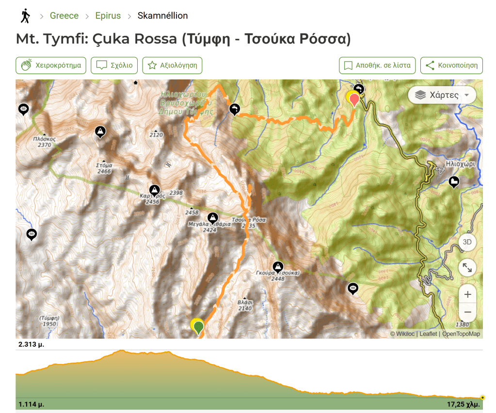 Δυσκολία και δεδομένα διαδρομής: Π5 – Ορειβασία (900μ./16 χλμ./10ώ.)