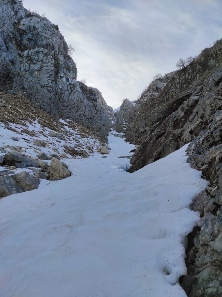 Για μια ακόμη φορά, ριχνόμασταν σε μια διαδρομή με αρκετά κενά στην πληροφόρησή μας, όχι από νωθρότητα, αλλά επειδή ακριβώς το διαδικτυακό υλικό που ανασύραμε ήταν ελάχιστο και λακωνικό: μια σύντομη περιγραφή και δυο-τρεις φωτογραφίες, αλλά και ένα εντυπωσιακό youtube βίντεο κατάβασης της διαδρομής με σκι (!) Ουδέν κακό αμιγές καλού, υποθέτω, αφού έτσι δεν στερηθήκαμε τη χαρά του αγνώστου και της εξερεύνησης.