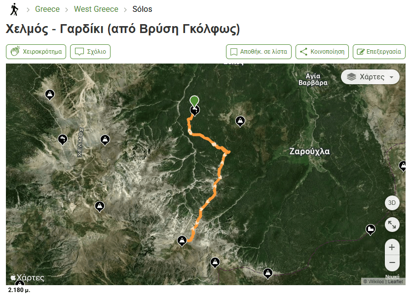 Πρόσβαση και Αφετηρία: Ως πιο δημοφιλής εκκίνηση για τη Διασέλα και την κορυφή του Γαρδικίου εμφανίζεται διαδικτυακά το λαοφιλές χωριό του βορειανατολικού Χελμού, η Ζαρούχλα. Ωστόσο, εμείς, θύματα μιας τάσης απομονωτισμού, μακριά από το όψιμο gentrification των βουνών, αποφασίσαμε να δούμε μια λιγότερο περπατημένη αφετηρία πρόσβασης στη «Διασέλα», δηλαδή την πλευρά του μοναχικού χωριού (τι σύμπτωση!) «Σόλο» και πιο συγκεκριμένα την ιστορική «Βρύση της Γκόλφως». Στο σημείο εκείνο έχουν ευγενικά τοποθετηθεί ξύλινα τραπέζια και παγκάκια, σε μια διακριτικά οριοθετημένη έκταση στη βάση πανύψηλων σκιερών ελάτων. Παραδίπλα, το νερό της κρήνης ρέει στο διηνεκές. Κάπου στα ψηλά μέσα στις φυλλωσιές κρώζει και τιτιβίζει κάθε λογής πτηνό, φροντίζοντας για το πρωινό μας ξύπνημα.