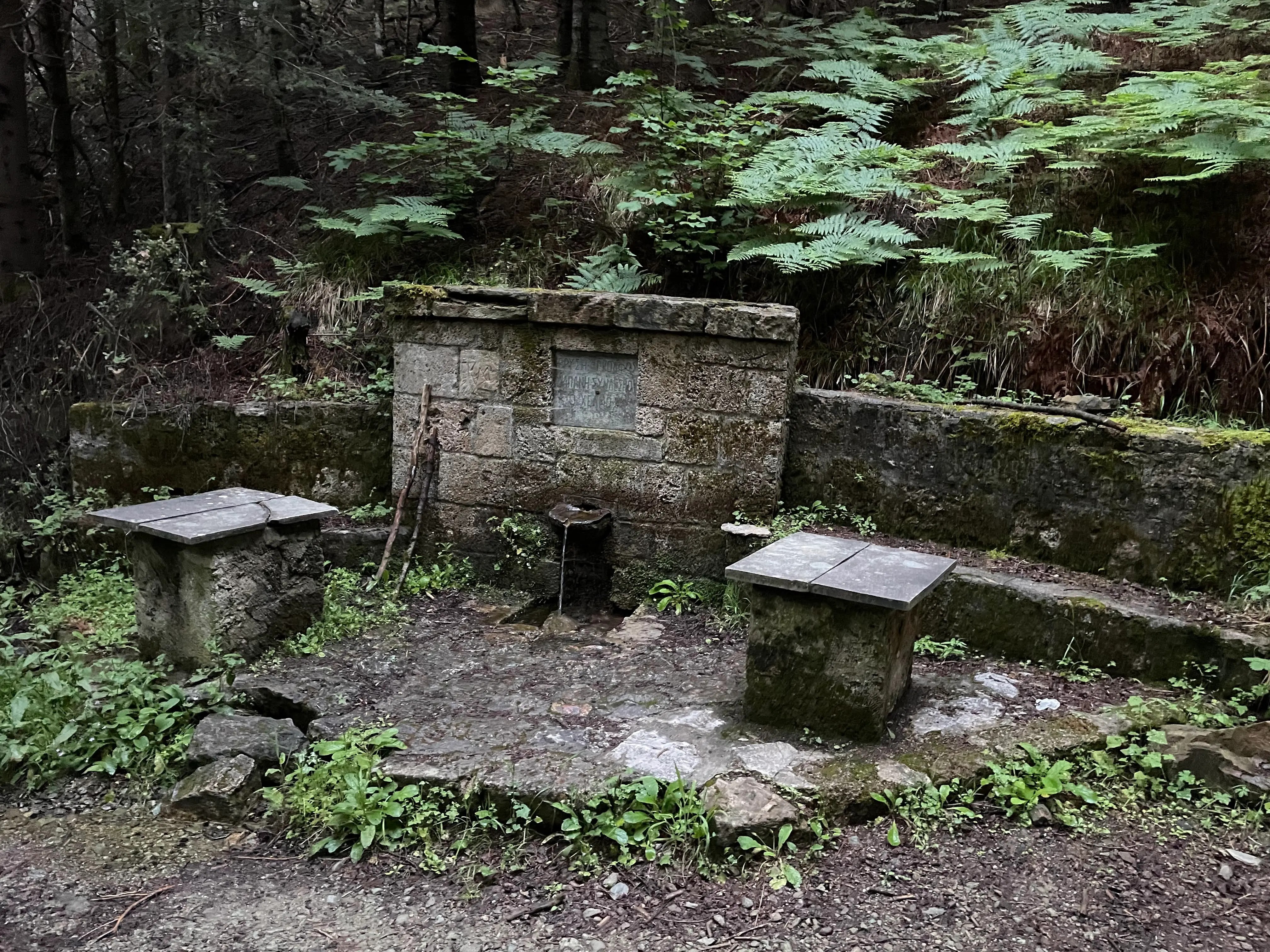 Ξεκινώντας από τη Βρύση, το βουνό σε υποδέχεται ευγενικά, με μια κλιμάκωση, λες και θέλει να σε παρασύρει διακριτικά σε μια ολοένα και πιο σκληρή περιπέτεια: πρώτα σε χωματόδρομο, μετά απότομη στροφή αριστερά στον παρακείμενο κούκο και χωνόμαστε σε μονοπάτι μέσα σε πυκνό δάσος που μοιάζει με εμπόλεμη ζώνη σε σειρά φαντασίας, στην οποία τα δέντρα, κάθε ηλικίας, ζωντάνεψαν και επιδόθηκαν σε μάχη με απροσδιόριστο, αθέατο εχθρό. Θες από τον αέρα, τα ζιζάνια, την έλλειψη νερού, το -σχεδόν λησμονημένο- μονοπάτι μας κόπηκε ουκ ολίγες φορές από πεσμένα δέντρα – κορμούς και κλαδιά σε ένα αδιάβατο συνονθύλευμα που προσδίδει στο δάσος αγριάδα, ερημιά, απομόνωση και λίγη θλίψη.