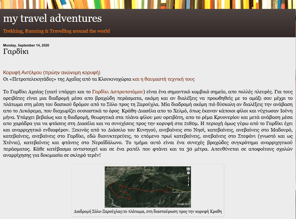 Το παρόν blog έχει χαρακτήρα απομνημονεύματος/βιωματικής αποτύπωσης, είναι ερασιτεχνικό, δεν συνιστά προτροπή για την ανάληψη των περιγραφόμενων δραστηριοτήτων και σε καμία περίπτωση δεν υποκαθιστά τις συμβουλές ή υπηρεσίες εξειδικευμένων επαγγελματιών. Ενδεχομένως οι πληροφορίες που παρέχονται στο παρόν blog, καθώς και σε τυχόν εξωτερικούς συνδέσμους να είναι άστοχες, ανακριβείς και παραπληνητικές, εξαιτίας των μεταβαλλόμενων συνθηκών, παρανόησης εκ μέρους του συντάκτη ή λάνθασμένης καταγραφής σε τεχνικά μέσα (GPS). Ο διαχειριστής δεν ευθύνεται καθόλου και σε καμία περίπτωση, σε οποιονδήποτε βαθμό αμέλειας, για τυχόν παρανοήσεις που δύνανται να προκύψουν από τη χρήση αυτού κατά την ενάσκηση των σχετικών δραστηριοτήτων – οι οποίες εξελίσσονται σε μη ελεγχόμενο φυσικό περιβάλλον και εμπεριέχουν εγγενείς κινδύνους για τη ζωή και τη σωματική ακεραιότητα των συμμετεχόντων. Οι επιδιδόμενοι σε αυτές οφείλουν να διασταυρώνουν τις πληροφορίες τους, να εκτιμούν τις προσωπικές τους σωματικές και τεχνικές δυνατότητες, καθώς και τις ειδικές συνθήκες κάθε εξόρμησης, την οποία αναλαμβάνουν αποκλειστικά με δική τους ευθύνη. Απαγορεύεται αυστηρά η ολική ή μερική αναπαραγωγή, ανατύπωση, παράφραση, διασκευή ή οποιαδήποτε άλλη μορφή απόδοσης του περιεχομένου του παρόντος ιστότοπου, με οποιοδήποτε μέσο, ηλεκτρονικό, μηχανικό, φωτοαντιγραφικό ή άλλο, χωρίς την προηγούμενη έγγραφη άδεια του συντάκτη.